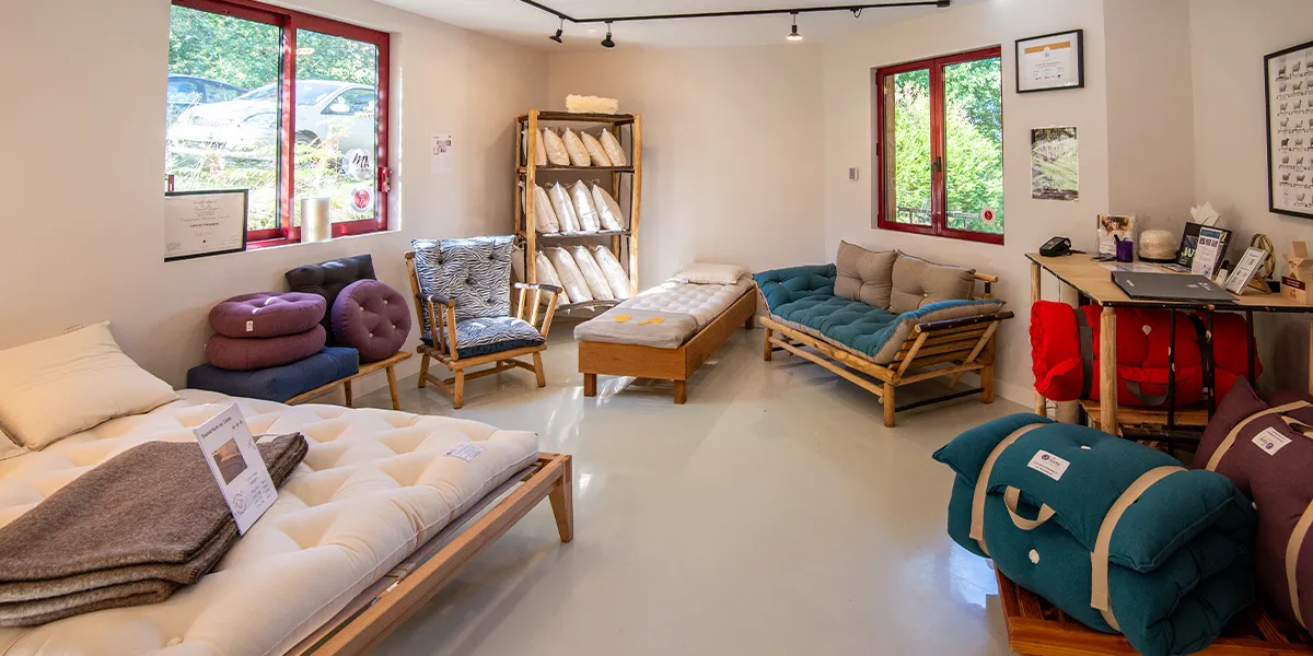 Au fil des ans, « Laine & Compagnie » a développé toute une gamme de matelas, couettes, oreillers, futons et coussins en laine. Si vous cherchez le mouton à cinq pattes, il suffit de pousser la porte de cet atelier pour tester ses produits dans le showroom.