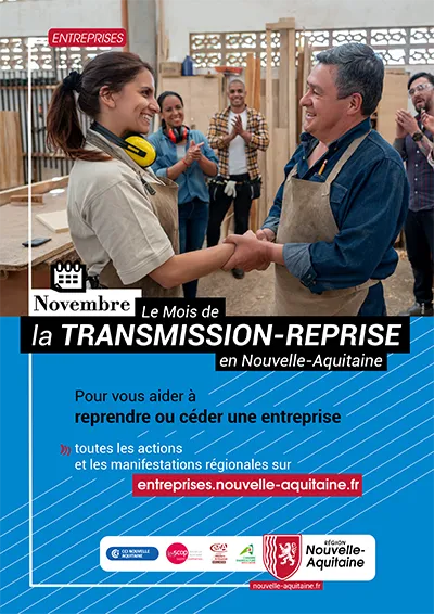 Du 30 octobre au 8 décembre 2025, la Région Nouvelle-Aquitaine organise le « Mois de la Transmission-Reprise », pour informer et accompagner celles et ceux qui souhaitent céder ou reprendre une entreprise. Près de 80 événements sont programmés sur tout le territoire pour préparer l’avenir et relever un défi crucial : la pérennité du tissu entrepreneurial régional.