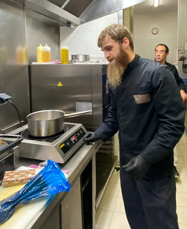 Derrière les fourneaux, le chef Bastien apprécie la motivation de l’équipe © Corinne Mérigaud