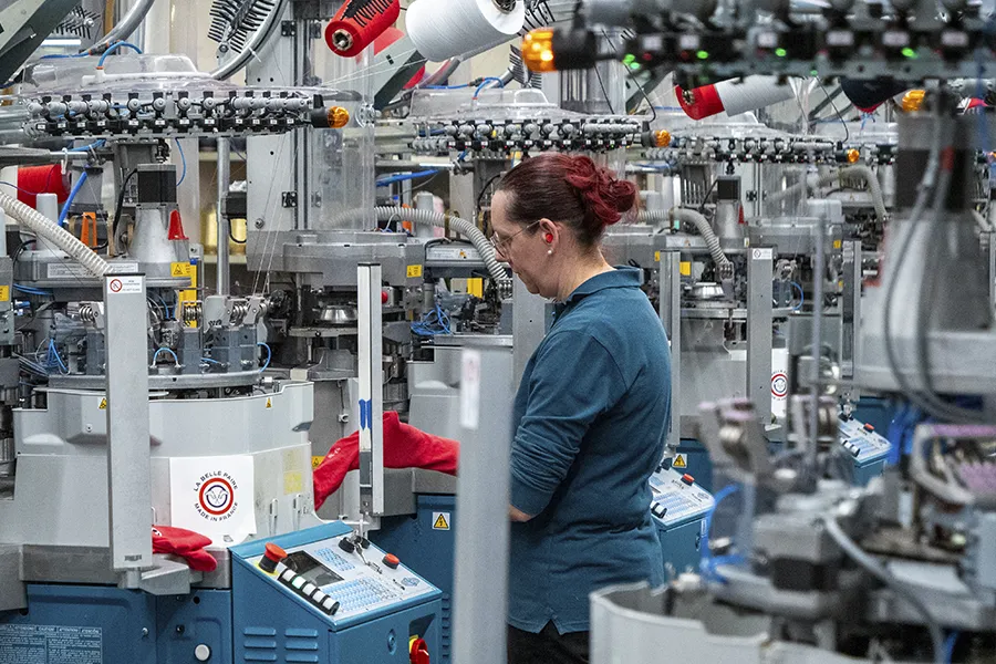 Pour ce faire, ce sont pas moins de 300 000 € qui ont été investis pour permettre à l’usine des Cars d’acquérir 10 nouvelles tricoteuses robotisées à la pointe de la technologie, en plus de 3 machines du site redirigées sur la production de la Belle Paire. Elles seront suivies par 3 autres dans les mois à venir, portant ainsi à 16 le nombre de tricoteuses pour faire tourner 24h/24 l’atelier de la Belle Paire.