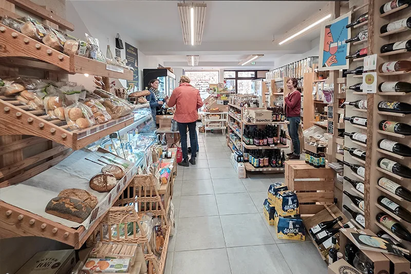 Le magasin propose exclusivement des produits certifiés biologiques : vrac, fruits et légumes de saison, pain, vins et épicerie courante. Les fruits et légumes viennent compléter ceux des producteurs locaux présents sur les marchés hebdomadaires. Les produits sont issus d’une agriculture respectueuse de l’homme et de l’environnement, biologique ou paysanne, et proviennent prioritairement de France ou du commerce équitable.