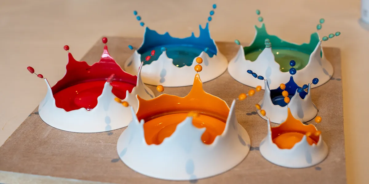 Cette idée de botte leur est venue dans la foulée de leur collection Splash ! qui éclabousse des murs devenus aquatiques. « On a rebondi sur cette idée, on s’est demandé ce qui pourrait éclabousser et on a pensé à un enfant qui saute dans une flaque avec ses bottes » se souvient-elle. Avant, il y a donc eu « Splash ! ». Pour la petite histoire, Yaël et Guillaume avaient été contactés par Chanel en 2018 pour une commande de trois œuvres d’art contemporaines sur la thématique « Chanel n°5 ». Parmi les trois naquit Splash ! qui matérialise l’impact d’un flacon de Chanel n°5 qu’on jetterait dans une flaque. De là à penser à des éclaboussures sur des murs d’eau ou des plafonds, il n’y avait qu’un pas. Leurs pièces qui intègrent ou non un aimant, s’accrochent au mur ou se posent sur un meuble.
