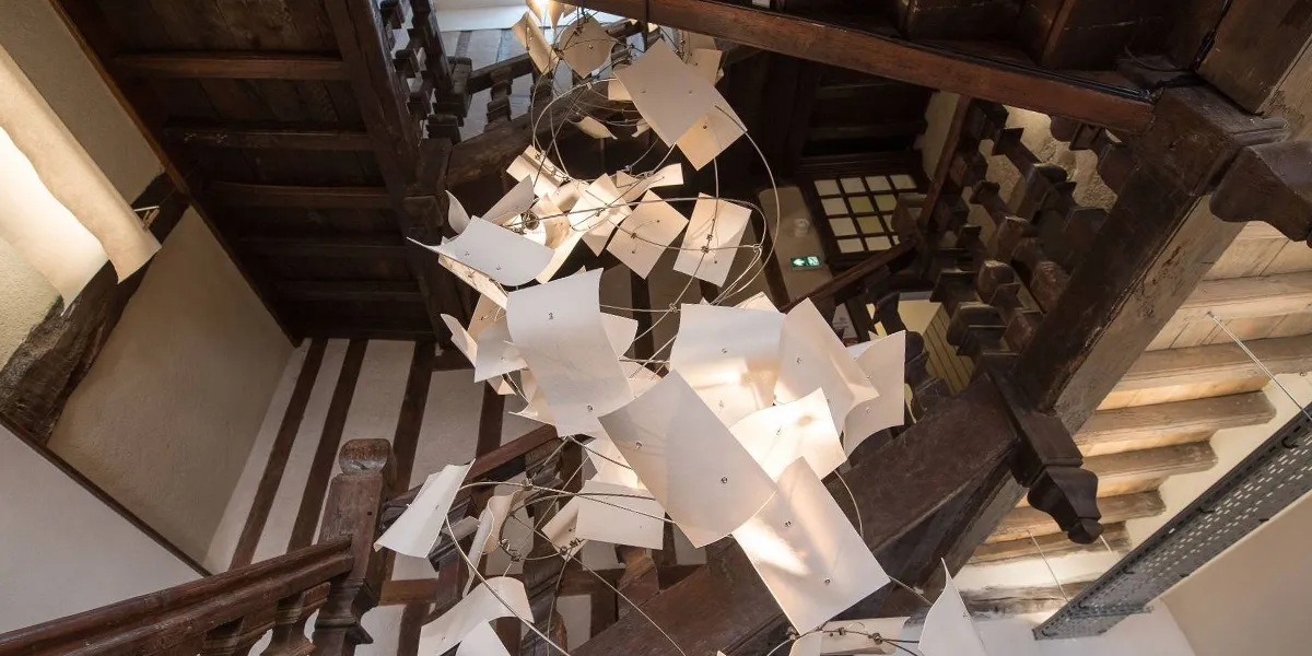 Toujours à la recherche de nouvelles techniques, Guillaume et Yaël innovent pour ouvrir de nouveaux champs des possibles. C’est le cas avec cette « porcelaine papier » pour laquelle ils ont mis au point leur recette en incorporant des fibres de coton à la barbotine. Ils fabriquent des feuilles qui, grâce à leur souplesse et à leur finesse, permettent de réaliser des luminaires ou des suspensions imposantes composés de dizaines, voire de centaines, de petites feuilles finement ciselées.