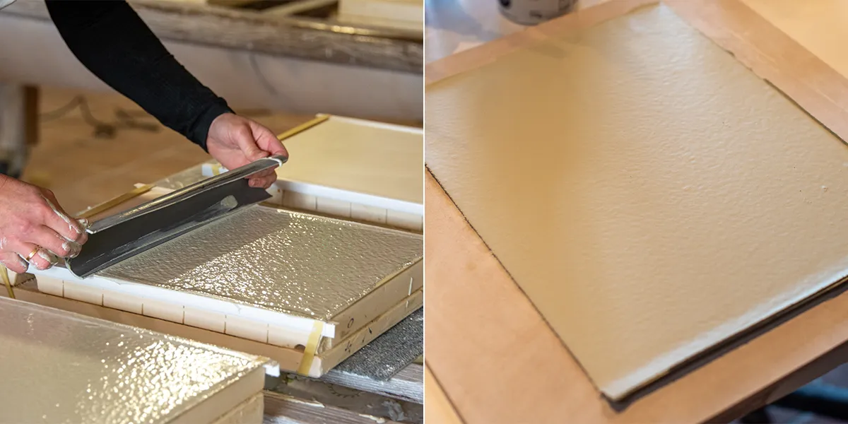 Guillaume se laisse guider à l’instinct et en perce de toutes dimensions sans trembler. Ensuite, il adoucit les bordures de chacun avec un outil fait maison dont il garde jalousement le secret. Le résultat est, comme les autres créations du tandem, esthétiquement réussi, techniquement bluffant et pourtant, suffisamment simple pour parler à tous.