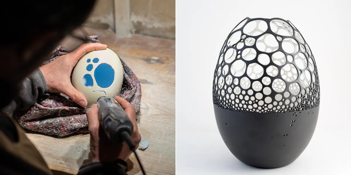 Parmi leurs meilleures ventes, les bottes et les lampes en porcelaine papier arrivent en tête suivies par la collection Splash ! et « Écume », une série de pièces percées qui interpelle. Mais comment fait-il tous ses trous ? Démonstration avec Guillaume qui maîtrise à merveille l’art des trous . « Je me prépare à en faire pendant une semaine pour les prochains salons » lance-t-il.« Quand j’étais formateur, un élève sur deux faisait des trous dans les pièces. On n’est pas les premiers à travailler sur les trous. » Certes, mais être expert en trous n’est pas l’apanage de tous.