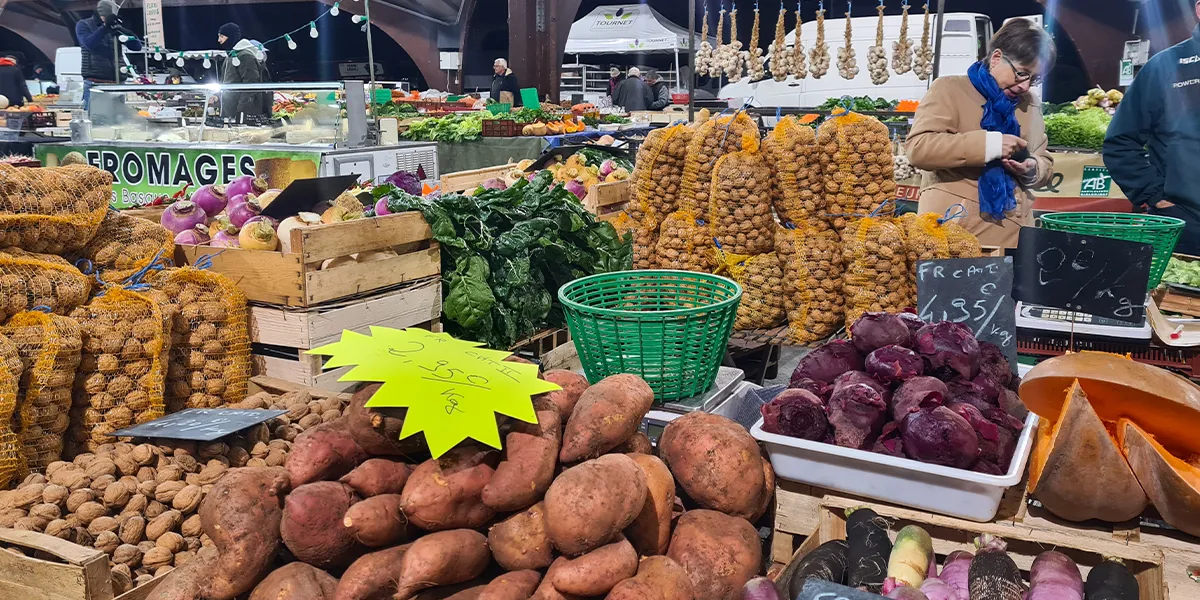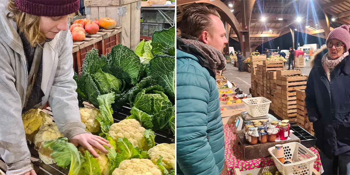 Au marché de Brive-la-Gaillarde… Pour concocter son menu unique du jour, Jérémy Cannesan fait avec ce qu’il trouve en fonction de la saison et des aléas climatiques © Pauline Sutter