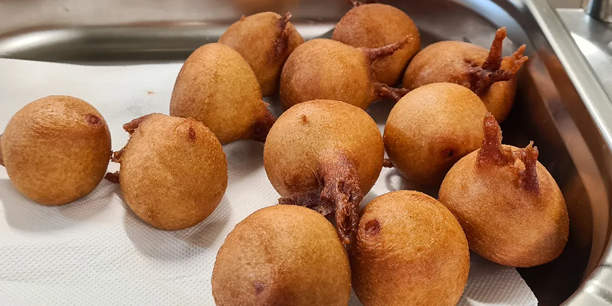 Beignet soufflé et garni de pulpe de patate douce violette… où comment se passer de chocolat pour concocter des desserts alléchants ! © Pauline Sutter