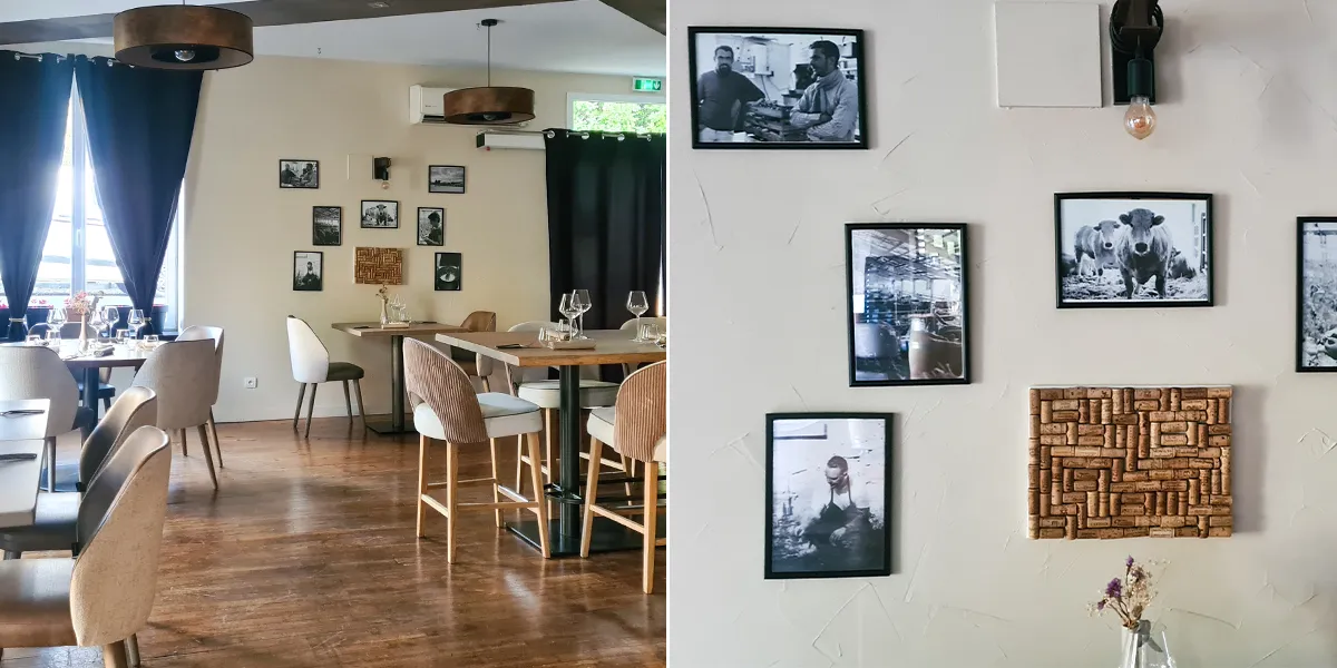 Un restaurant chic mais simple de 24 couverts / Des portraits de producteurs sur les murs © Pauline Sutter