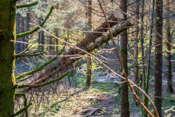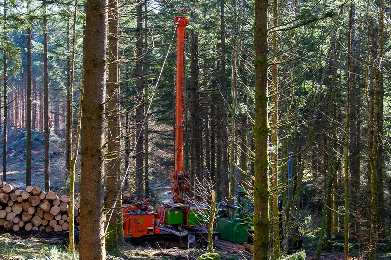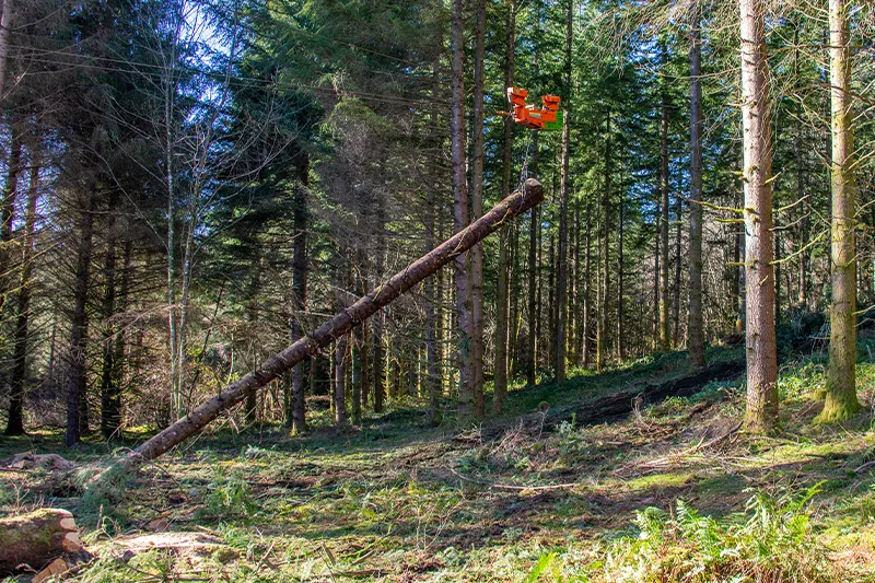 Concrètement, comment ça fonctionne ? Le chef d’entreprise explique : « Les arbres sont coupés sur la parcelle puis ils sont remontés jusqu’au chemin via ce câble. On peut le tendre entre 100 et 700 mètres. » Ainsi, le milieu n’est pas impacté par les tracteurs de débardage.