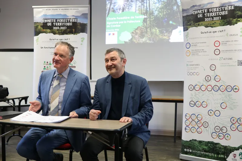 En griffant en bas du document le 8 janvier dernier, le préfet de la Corrèze Vincent Berton devient le 38ème signataire de cette charte. « Ce n’est pas la charte du PNR, c’est la charte des signataires, de toute la filière bois », tient à préciser le président du PNR Philippe Brugère. Parmi ces 38, on trouve « des centres de formation, des collectivités, des associations, des propriétaires forestiers, des exploitants, des coopératives », liste Julien Goubely, Chargé de mission Forêt Bois au PNR. La préfecture de la Creuse l’a signée il y a quelques mois.