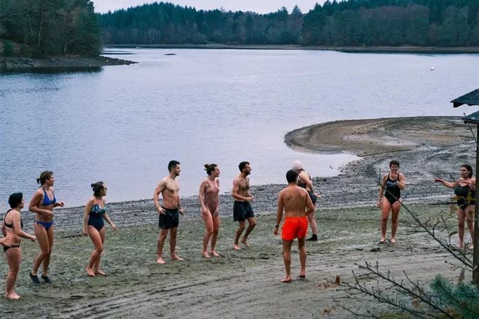 Le pêcheur au loin doit se demander ce que l’on fait, bis. Quelques exercices puis nous montons vers les lodges du village nature pour une alternance entre un bain glacé et un spa à 39 degrés. L’eau du bassin rempli de glace semble presque chaude. « On s’habitue, c’est au début que c’est le plus dur et finalement là ça va », analyse une participante fière de son exploit. L’eau chaude, qui frôle les quarante degrés, est quand même la bienvenue.