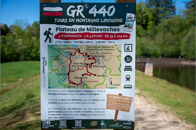 Créé en 1978, l’itinéraire de Grande randonnée numéro 440 (GR® 440) intitulé « Tour de la Montagne limousine » vient de faire l’objet d’un grand rafraîchissement. Si son tracé, qui oscille entre landes, sources et forêts profondes reste inchangé, sa topocarte a été fraichement mise à jour et il dispose désormais d’une « porte d’entrée », la première en France sur un GR® !