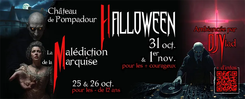 C’est devenu l’un des rendez-vous les plus « effrayants » de la période d’Halloween en Limousin. Le château de Pompadour va à nouveau se transformer en manoir hanté durant ces vacances de la Toussaint. Deux journées spéciales enfants et deux soirées adultes sont proposées. Frissons garantis !