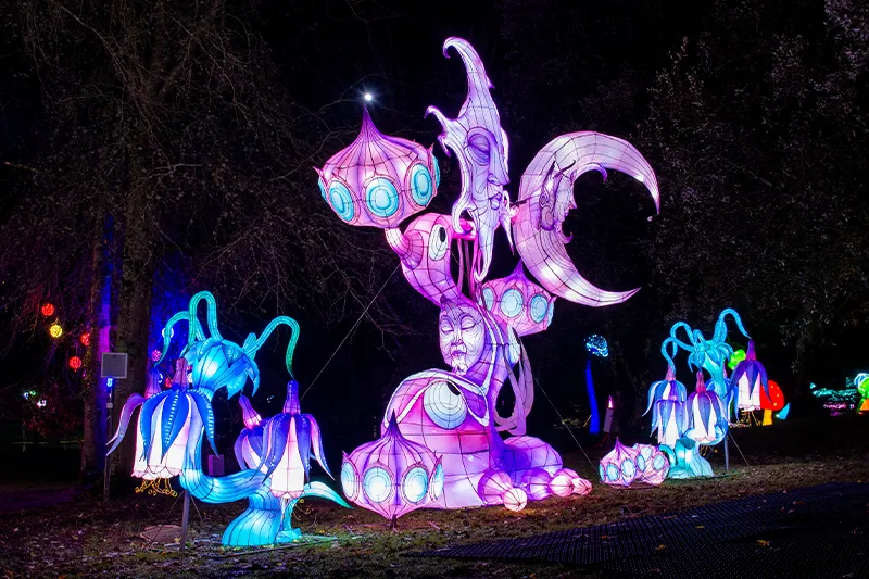 Il faut dire que, pour transformer le site et y ajouter les 1 000 structures lumineuses, il a fallu plusieurs mois à l’équipe de cet hôtel-restaurant de charme et aux prestataires extérieurs. Environ 100 artisans — sculpteurs, couturiers, ingénieurs, peintres, soudeurs, électriciens — ont œuvré pour imaginer, fabriquer, assembler et installer chaque pièce du Festival.