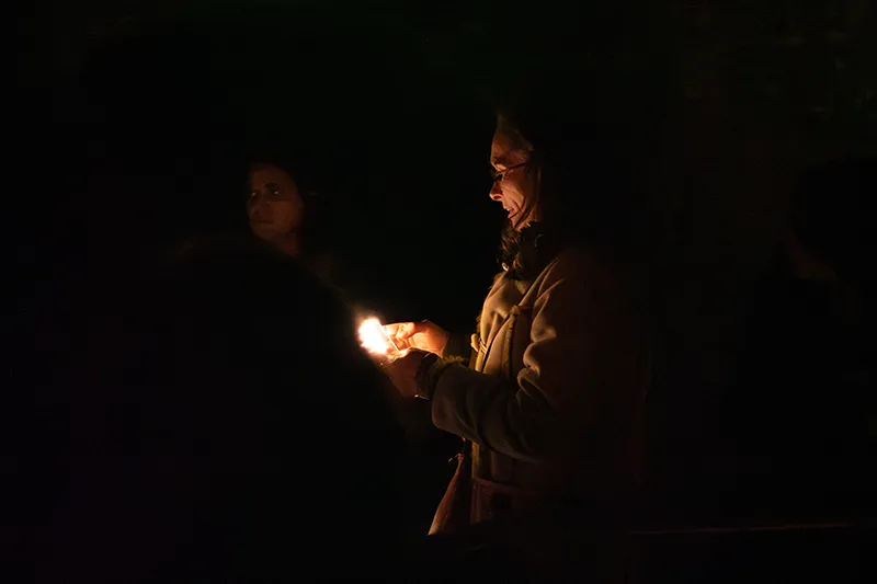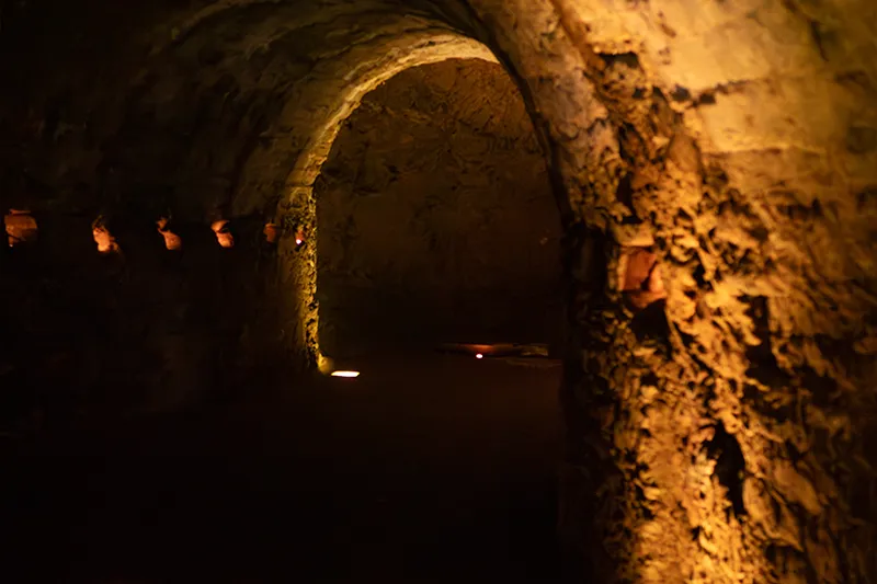 Après une rapide présentation du lieu et des consignes de sécurité, Anne nous invite donc à la suivre « 5 mètres sous terre, une des visites les plus basses possible en France. La limite est à 6 mètres sauf pour certains cas exceptionnels », explique-t-elle. Pour accéder aux souterrains, un grand escalier du XVIIe siècle jonché de bougies qui éclairent le chemin ; en tout, c’est une centaine de bougies qui illuminent le dédale de la Règle. Très vite, Anne Schantz invite les visiteurs à se réunir en cercle autour d’elle. C’est dans cette ambiance feu de camp scout que le voyage commence…