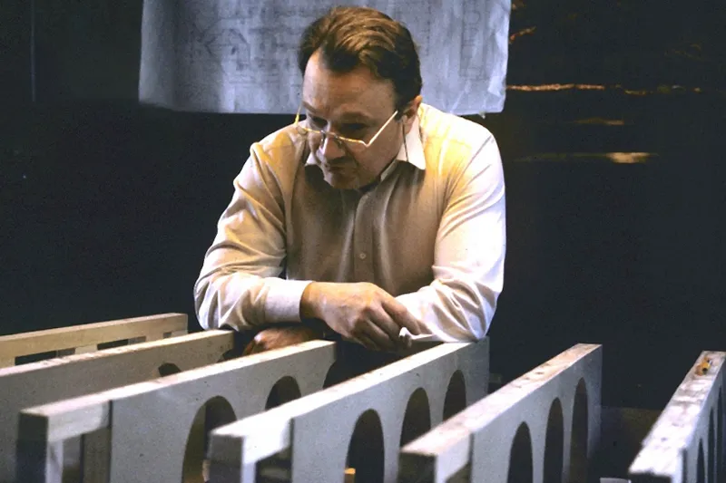 Le docteur Claude Vast devant la maquette du futur Aquarium du Limousin, en 1986 © DR