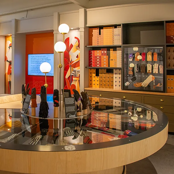 Un espace est dédié à la ganterie avec la reconstitution de chacune étape de fabrication d’un gant, et elles sont nombreuses, complété par l’histoire sociale de cette corporation, la naissance de l’Union syndicale ouvrière et de leur coopérative avec un focus sur les autres villes françaises connues pour leurs gants, Millau, Grenoble et Niort. Les visiteurs pourront admirer un florilège de 582 gants et de nombreux accessoires comme ces jolies boîtes à gants, des poires à talc, des baguettes pour enfiler les gants et des passe boutons.