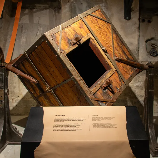 La première salle présente le « travail de rivière » (préparation des peaux pour le tannage) / La collection du musée compte de nombreuses pièces rares comme ce « turbulent », un foulon carré © Brice Milbergue