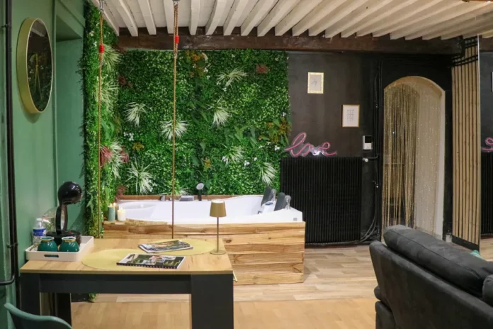 Ni une, ni deux, le couple épluche les annonces immobilières et tombe sous le charme de cette petite maison de bourg de 70 m², au cantou chaleureux, avec l’idée d’y créer une « Love room » déjà bien en tête : « À Bordeaux, le concept de « Love room » est bien développé et on a vu qu’ici, il y en avait très peu. » En plein essor depuis les années 2010, ces chambres sont présentes partout dans l’Hexagone, avec plus de 1 400 adresses aujourd’hui référencées sur les principales plateformes spécialisées.