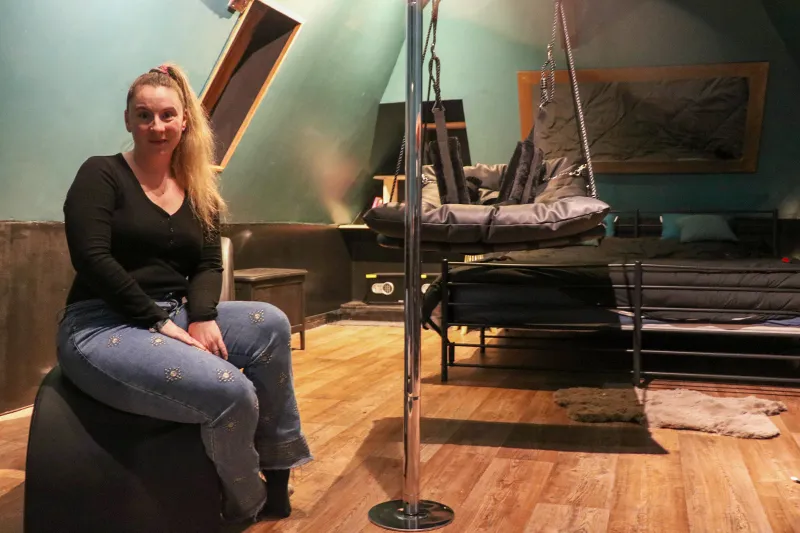 Barre de pôle-dance, fauteuil tantra, balançoire… des équipements peu commun pour un hébergement touristique ! © Jérémy Truant