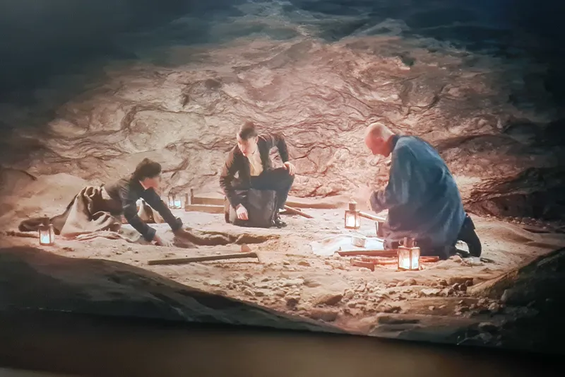 • Dans la première, le visiteur entre dans le bureau d’un des frères Bouyssonie et découvre l’histoire de cette sépulture néandertalienne.