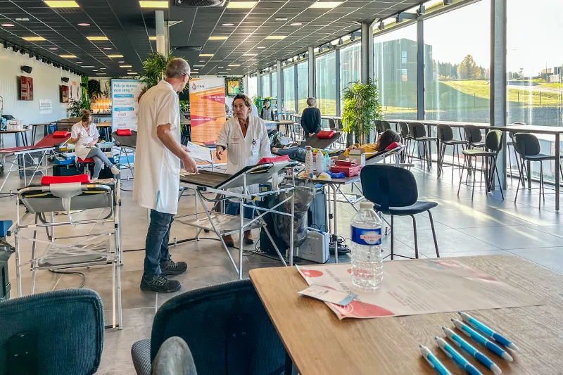 Attirer de nouveaux donneurs en proposant ce type d’événement : une collecte de sang au sein même d’une structure, située dans une zone d’activité. « Avant de se lancer, on a fait le tour des 35 entreprises de la zone pour estimer combien de donneurs on pouvait estimer si l’on organisait une collecte ici », reprend le président qui tient à remercier l’entreprise Puybaret spécialisée dans la distribution de matériaux pour le bâtiment et le chauffage.