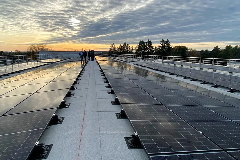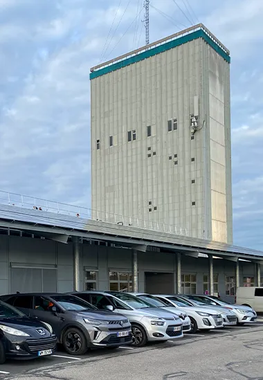 Deux tranches de travaux ont été réalisées pour un total de 4 millions d‘euros pour répondre à un triple-enjeu. Tout d’abord, la rénovation des toitures et la sécurisation des accès pour pérenniser les installations et pour améliorer l’isolation thermique des bâtiments. Le second objectif est de pouvoir produire de l’électricité et d’auto-consommer pour réduire la facture énergétique. Enfin, il devenait urgent d’améliorer le confort thermique des bureaux en pose des ombrières car ils étaient très exposés au soleil.
