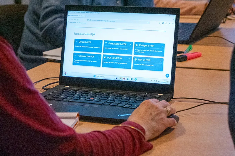 Aujourd’hui, au programme, c’est « compresser un PDF », un geste souvent bien pratique pour envoyer des documents administratifs, mais qui se transforme vite en un véritable casse-tête si on ne connaît pas la méthode. Pour cet atelier, c’est Anthony Couture, du pôle multimédia de la BFM du centre-ville, qui sera chargé de transmettre les « secrets » de cette méthode au petit groupe de 6 personnes en seulement une trentaine de minutes.